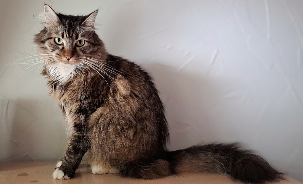 Sully came to us three years ago this month. He was four and a half at the time, so I guess that makes him seven now. He’s super chill and still acts like a four-year-old.