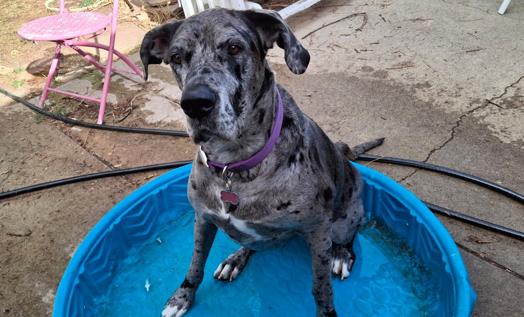 Scout understood the assignment. Sit in pool, obtain treats, get a nice water massage.