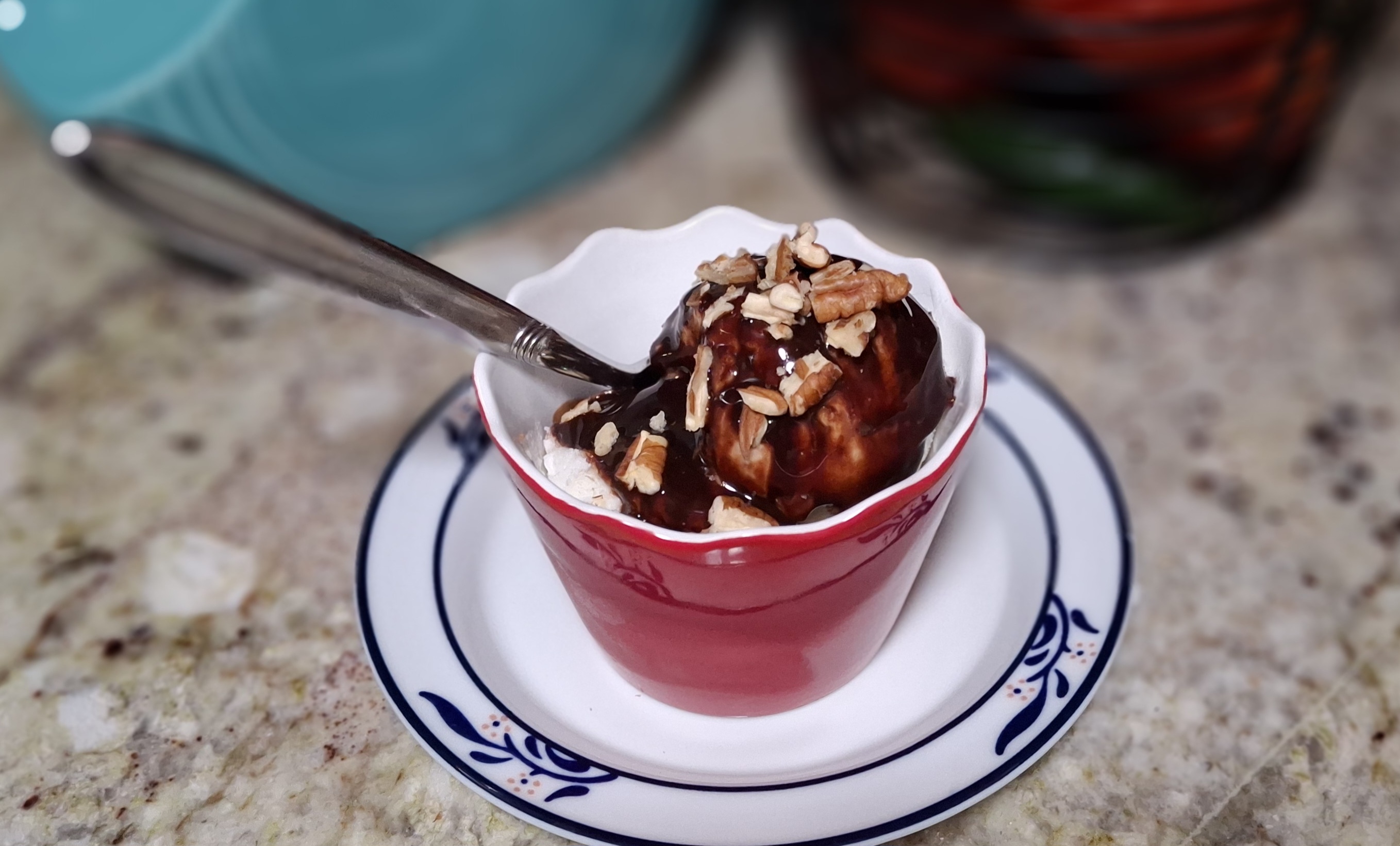 It’s going to be soft serve to start, but transfer it to an airtight container and place it in the freezer until ready to serve, it will be firmer.