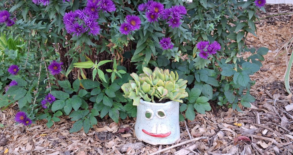 Bonus garden creations. My friend has been perfecting her pottery skills and created a fairy house for me (fairies not included, but I’m sure they’ll move in soon):