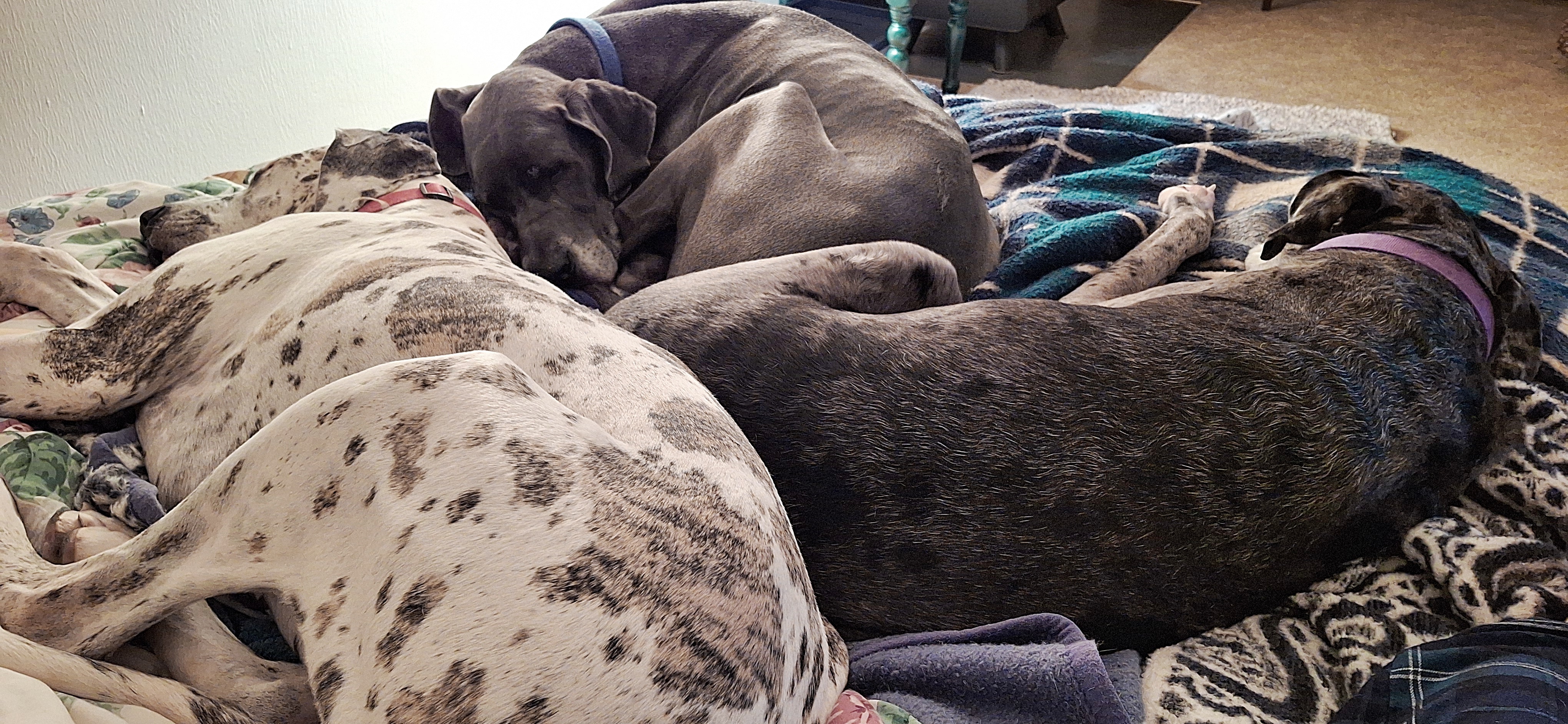 The dogs and I took a long car trip last week. Eight hours each way and lots of friends and family to visit.