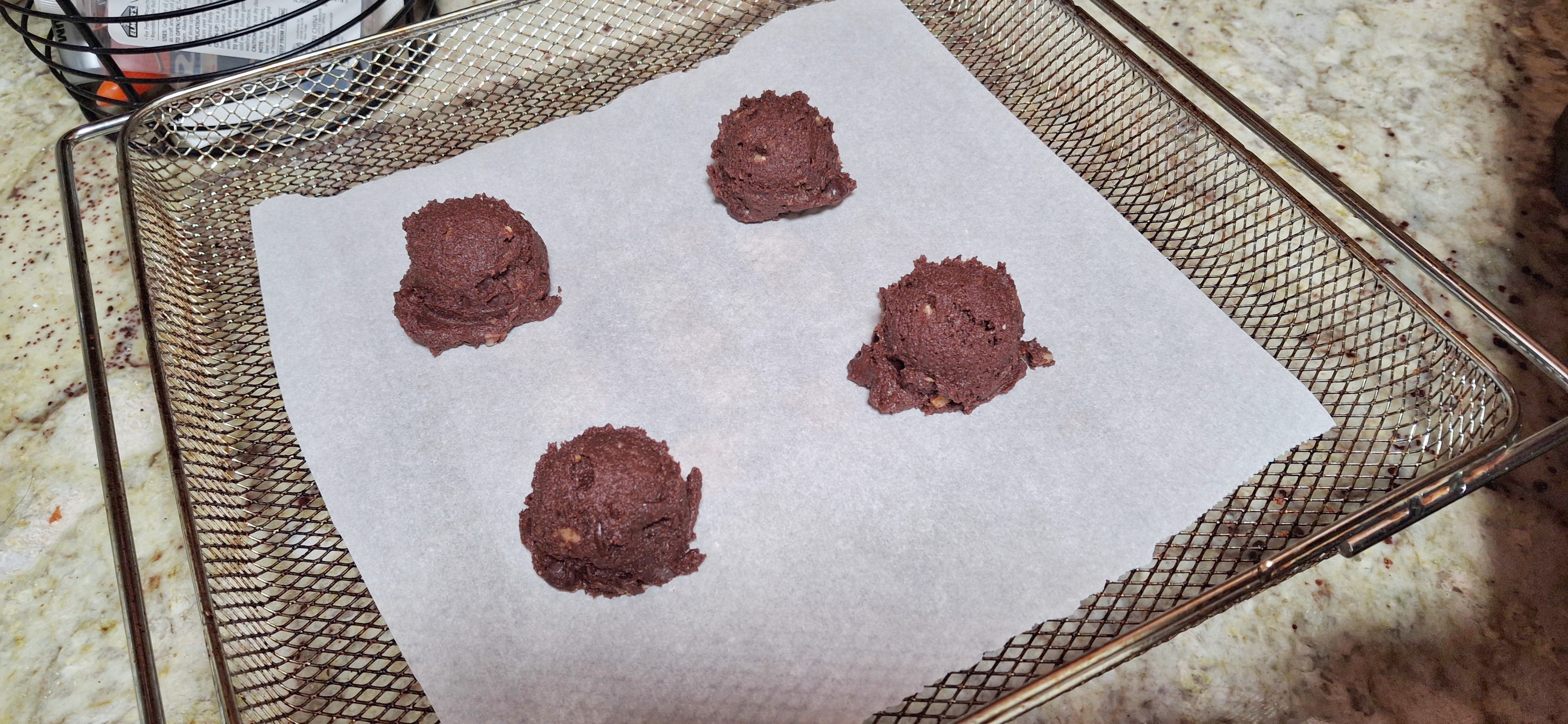 Air Fryer directions: Use parchment in the basket and place the cookies an inch or so apart. Make sure there is space on the edges of the parchment for the air to flow through.