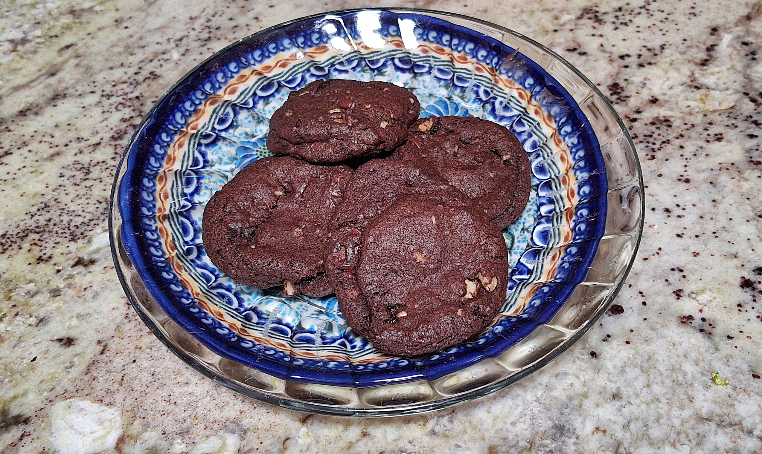With Valentine’s Day coming up, I wanted to do something chocolatey. It was between this recipe and a sheet cake. The cookies won out because I have a super busy week and these are easier to transport to various locations as I run around.