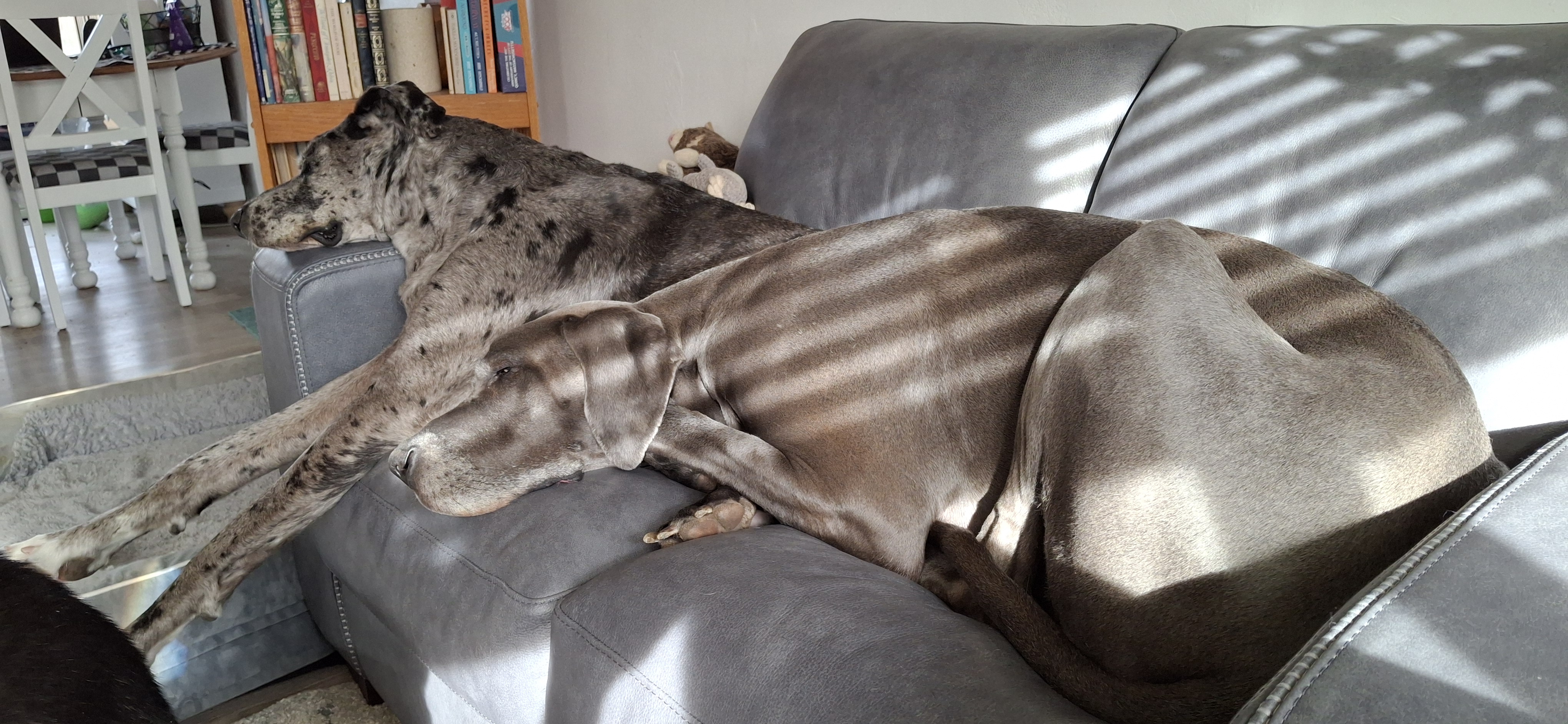It did not take long for things to return to normal, although there is a bit of a fight over who gets to sprawl on me now. Which is one of the reasons the sectional went away. I was tired of being trapped by everyone piled on my lap at once. And I do mean everyone.