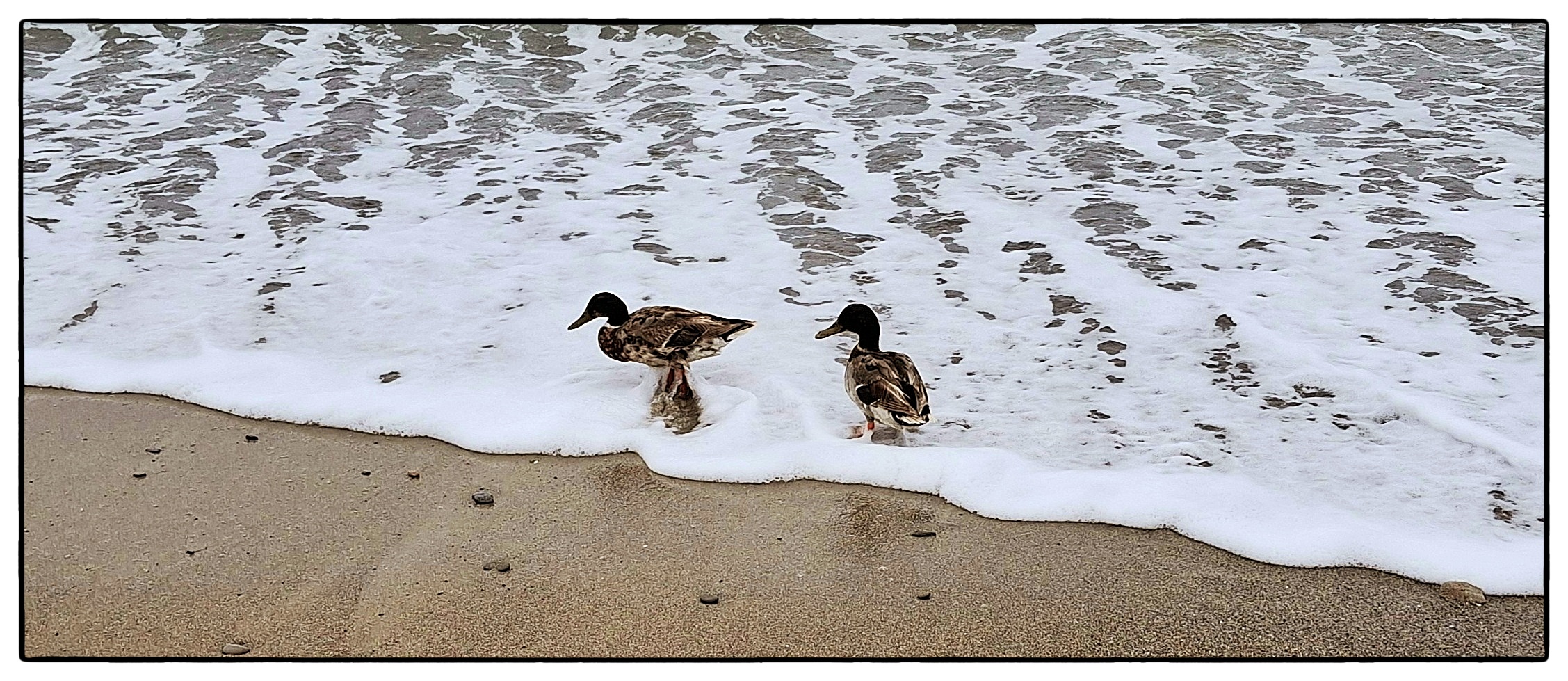 Saw these two as we walked Zuma Beach in California. They were having fun playing in the waves.