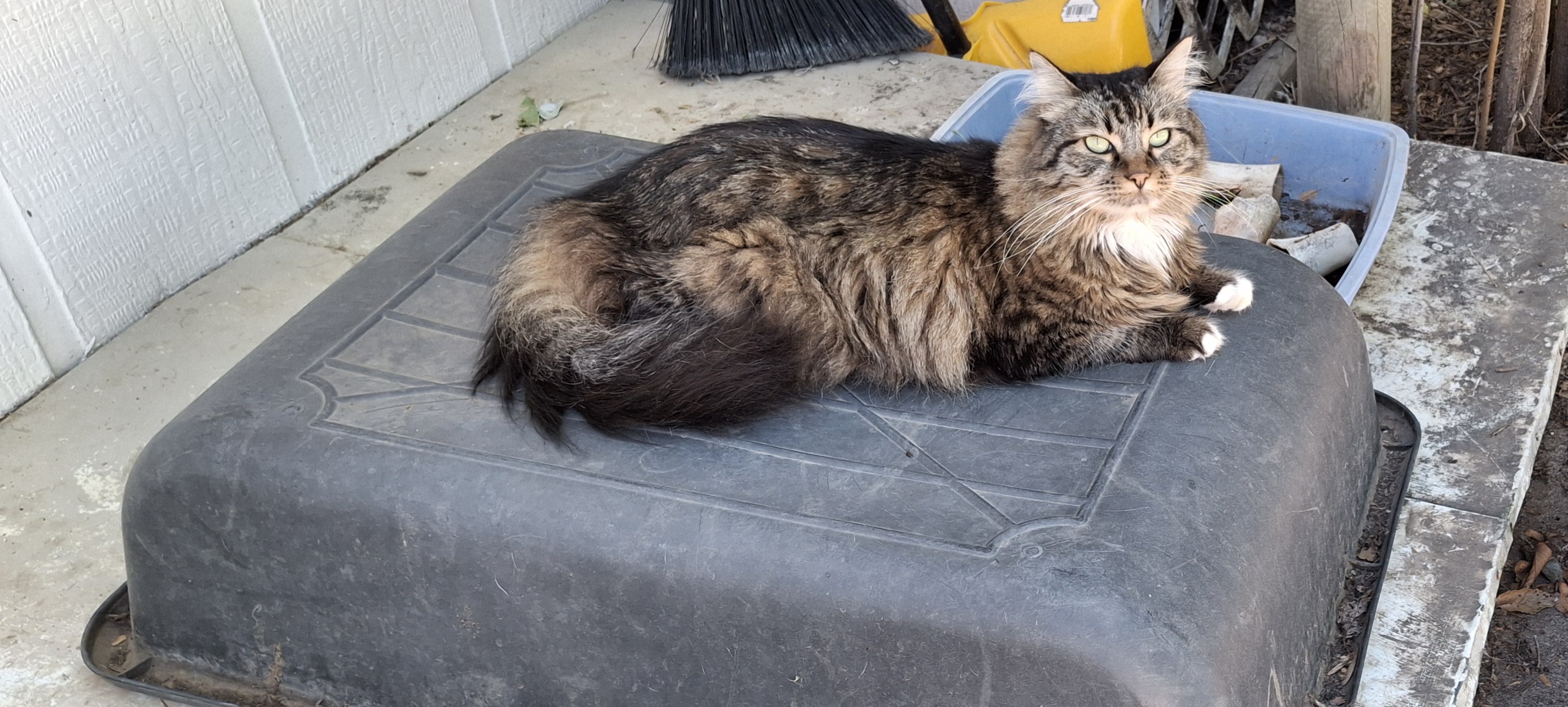 Willow reclaiming the backyard after the painters left