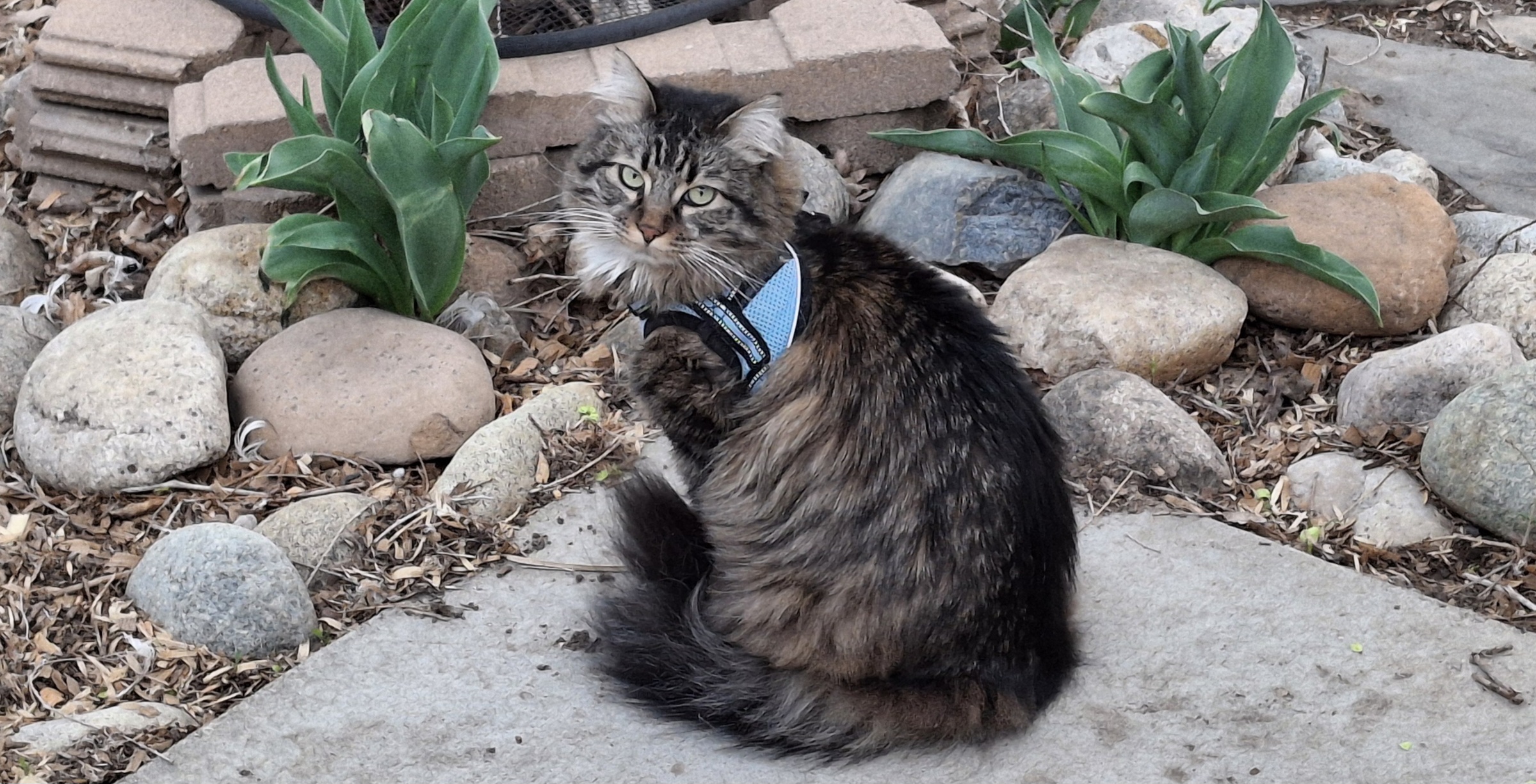 Reggie has made a new friend during his morning outside jaunts. It’s a baby squirrel who is as curious about Reggie as Reggie is about her.
