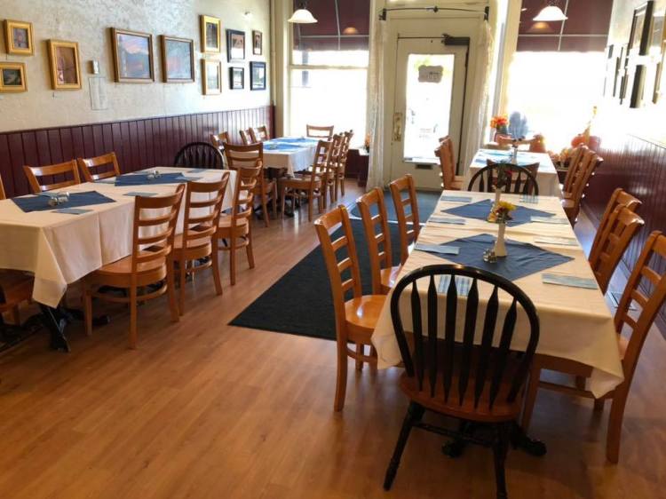 The entire café had a homey feel, with dark wood wainscoting paired with paint the color of butter and a charming assortment of mismatched wood tables and chairs. In the mornings, sun streamed through the large front windows, adorned with tiered yellow-checked cabin curtains and the Duck logo painted on the glass above.